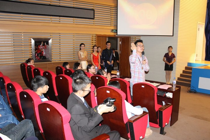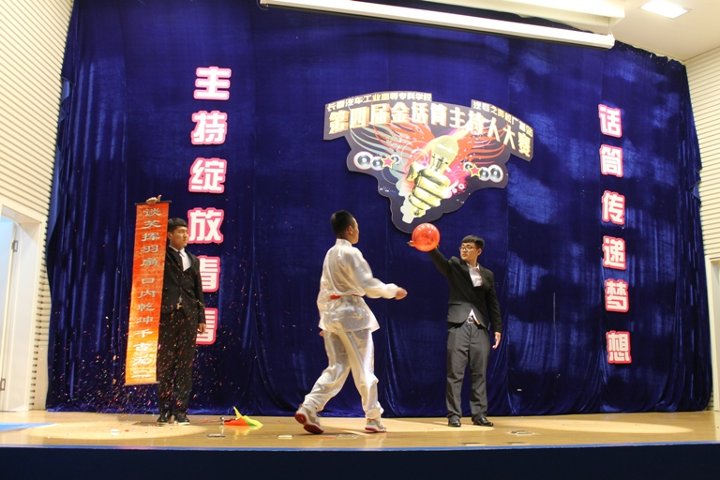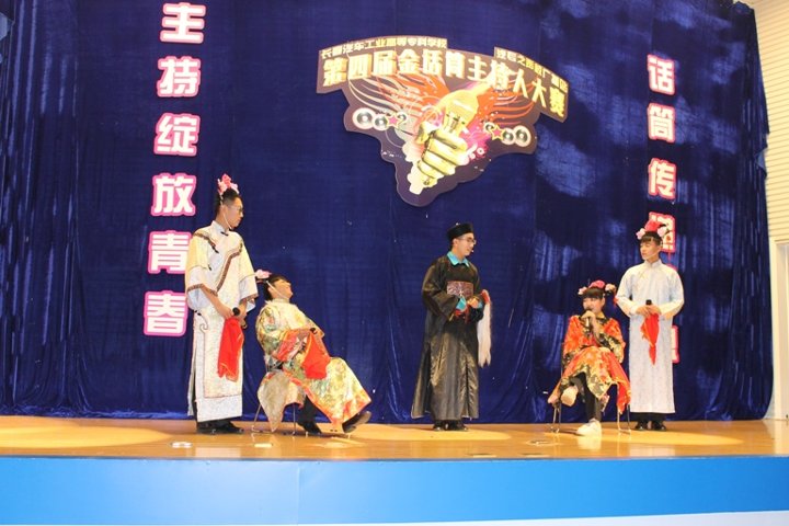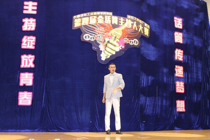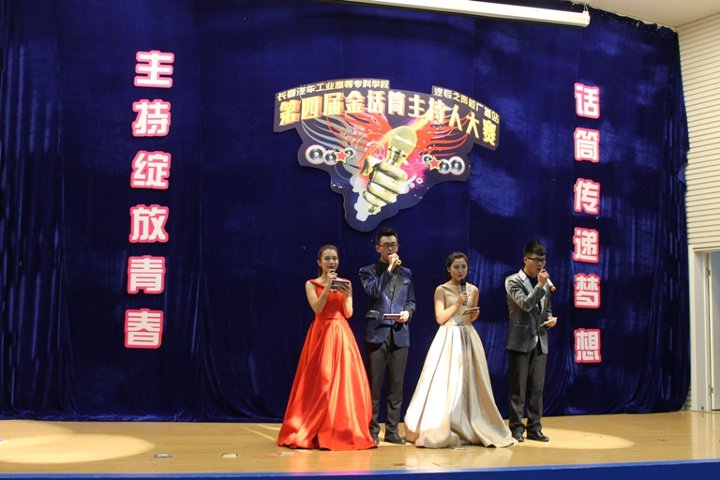 校园金话筒主持人大赛从2012年举办至今已成为学校备受瞩目的校园文化活动之一,受到广大同学的钟爱。本届校园金话筒主持人大赛历时两个月,参与报名人数近2000余人。经过初赛、复赛两轮竞技,最终有八位选手进入决赛。进入决赛的八位选手经过 “我行我秀”、“黄金100秒”和“决战巅峰”三个回合的激烈比拼,各显神通,不乏有感人肺腑的演讲,也有诙谐幽默的脱口秀主持。第一回合结束后,校广播站带来了令人捧腹的小品《甄嬛后传》,全场笑声不断,氛围热闹无比。第二回合结束后,由学生处赵书一老师和主持人包文龙共同带来诗朗诵《汽车的风流》,讲述了一汽的历史,深深的感染了在场的观众。各位选手经过两个回合激烈的竞技,四位选手直接晋级至第三回合即兴主持比赛环节,本环节选手们展现了良好的即兴主持素质,现场的观众都给予热烈的掌声。