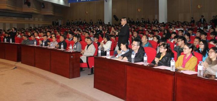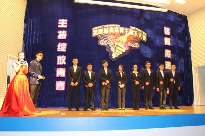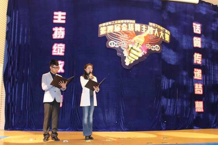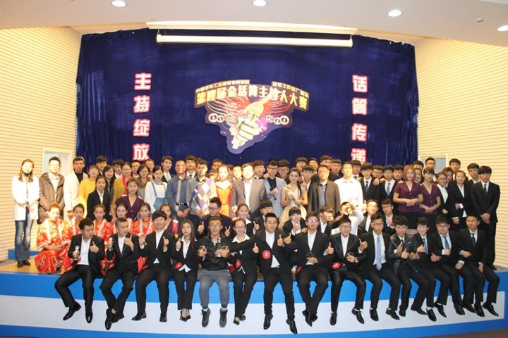 “主持绽放青春,话筒传递梦想”2015年11月20日18:10,我校第四届校园金话筒主持人大赛在报告厅圆满落幕。副校长明晓辉、机械工程学院院长魏建军、电气工程学院院长张勇忠、校党委宣传部部长蒋希娟、汽车运用学院副书记张红庆、机械工程学院院长助理颜丹丹、汽车工程学院院长助理兼办公室主任齐琦、学生处副处长王伟、校团委副书记赵良富以及学生处老师、各学院辅导员老师出席了本次活动。大赛特邀东北师范大学传媒学院周帅、汽车工程学院辅导员苏崇刚为点评嘉宾,本次大赛还特设大众评审团,校、院主席团、第三届校园金话筒主持人大赛的参赛选手为大众评审团成员,比赛开始前,八位选手宣读了开赛誓言。