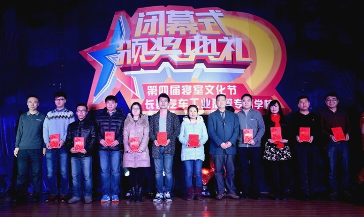 2015年12月16日,长春汽车工业高等专科学校第四届寝室文化节闭幕式暨颁奖典礼在校报告厅圆满落幕,副校长明晓辉、校长助理胡国良、总务处处长刘建才、长春杭宇高校后勤管理有限公司副总经理罗红亮、汽车营销学院院长王泽生、机械工程学院院长魏建军、汽车运用学院副书记张红庆、汽车工程学院院长助理兼办公室主任齐琦、学生处副处长王伟、校团委副书记赵良富、学生处公寓中心李明东老师以及学生处、各学院学工团队的老师们出席了颁奖典礼。本届寝室文化节闭幕式暨颁奖典礼由广播站干事万元、秦培亮共同主持。