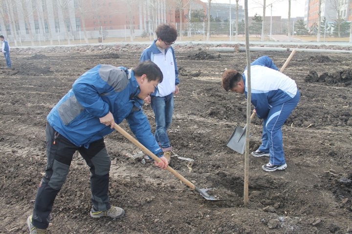 在各位领导和老师的带领下,同学们热情高涨地来到植树地点,以学院为单位进行分工植树,老师与同学们不畏寒冷一起挥锹培土。师生们种下的不仅仅是一棵棵小树,更是一份份绿色的希望。经过师生们的共同协作,一棵棵树苗在春风中随风摆动,和师生们的欢声笑语融为一体,恰似一首春天的赞歌。