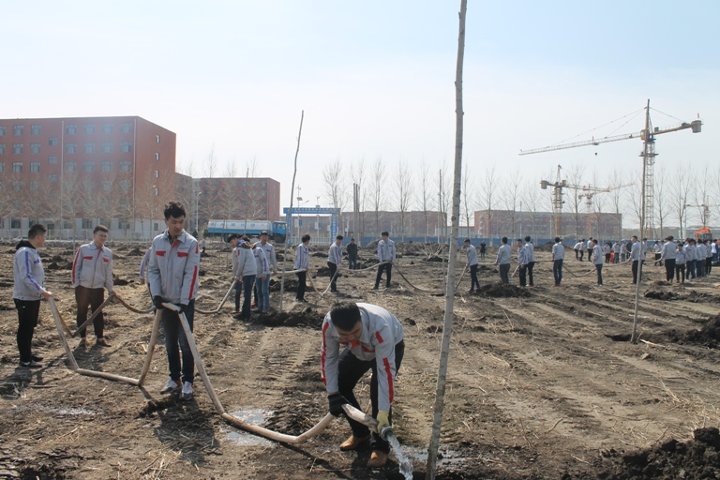 为了弘扬党的十八大和十八届三中、四中、五中全会精神,培养新一代马克思主义先进青年,提高我校“青马”学员爱护环境、保护环境的意识,促进校园绿化建设工作,我校于2016年4月10日7点30分在校园北侧空地成功举办以“绿化校园,青马在行动”为主题的校、院“青马”学员校园植树活动,副校长明晓辉、总务处处长刘建才、基建办主任赵剑峰、学生处副处长王伟、校团委副书记赵良富、汽车运用学院副书记张红庆、学生处李明东、徐志鹏老师以及各学院分团委书记和辅导员老师参加了本次活动。