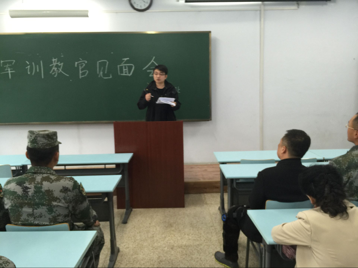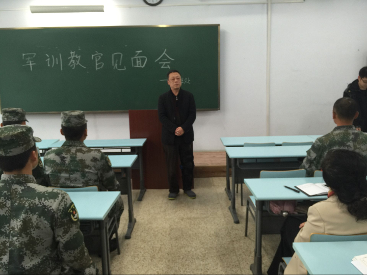 2016年5月3日上午10:00,承担我校2015级学生军训工作的中国人民解放军65370部队48名教官进驻我校,学生处按预定方案将他们安排在七公寓住宿。下午2:00,欢迎承训教官进驻仪式在9号楼B区101室成功举行,学生处副处长王伟主持。参加欢迎仪式的包括48名承训教官、学生处徐志鹏老师以及带训辅导员老师们。