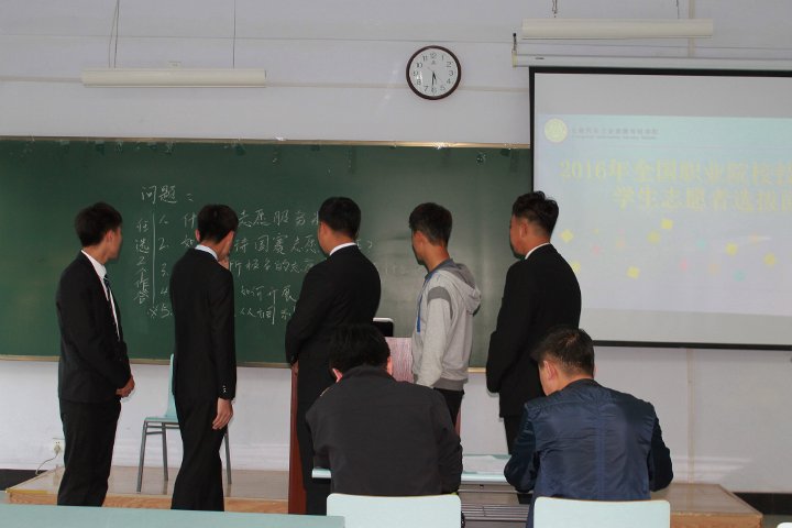 2016年5月17日,全国职业院校技能大赛高职组(吉林分赛区)学生志愿者面试、选拔工作开始,志愿服务岗位设有大赛办公室、赛事联络组、赛事场地组、赛事宣传组、赛外活动组、赛事安保组、后勤保障组、赛事接待组、公寓服务组、礼仪组、校园环境服务组等11个组别。其中赛事场地组志愿者选拔工作由校团委授权委托汽检、营销赛项负责学院组织选拔,其他岗位志愿者选拔工作由学院分团委初选,校团委面试小组复选的形式完成。面试小组考官有校团委副书记赵良富携团委及学生处老师组成。