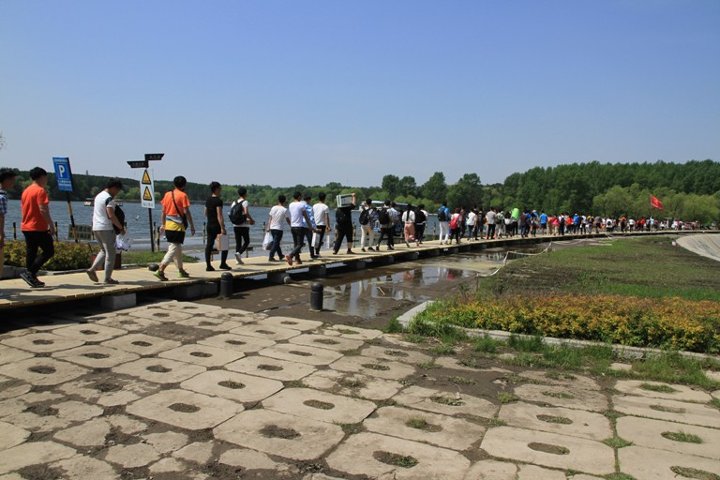 飒爽五月天,唯美净月潭。全体成员在校旗的指引下,以徒步负重的方式前往净月潭森林浴场。徒步是一项有利于青年学生强身健体、磨练意志的活动,团队成员相互交流、相互协作。