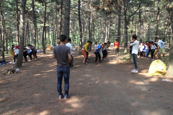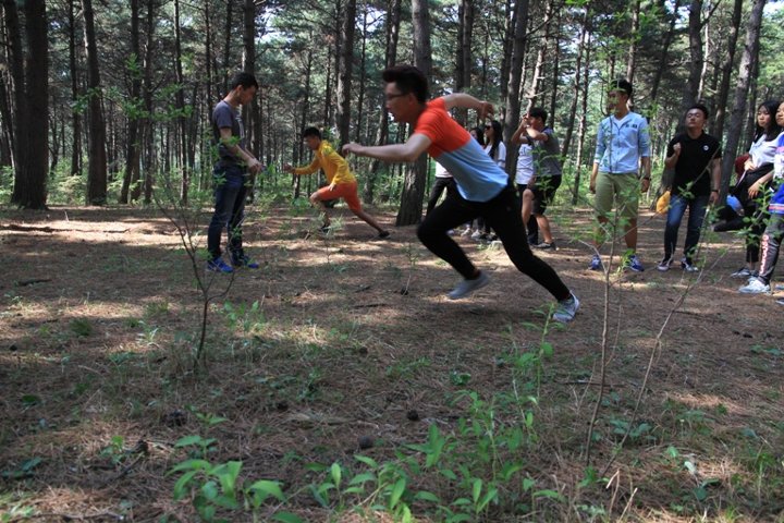 本次大学生“三走”户外拓展活动包括“团队徒步”、“团队破冰”、“森林寻宝”、“项目训练”、“回顾总结”等环节,主要开展了“森林寻宝”、“趣味拔河”、“五毛一块”、“同舟共济”、“齐眉棍”等户外拓展项目。活动中,全体成员做到了“不分职务,不分性别,不分年龄”的平等意识,以先行而后知的训练要旨,热情而投入地进行了大学生“三走”户外拓展活动。上午7:00,全体成员在学校图书馆前集合。首先,由校学生会副主席李文博进行破冰组队,将全体成员分成四个团队,整个环节彰显了共青团学生干部超强的沟通能力和无私的奉献精神。