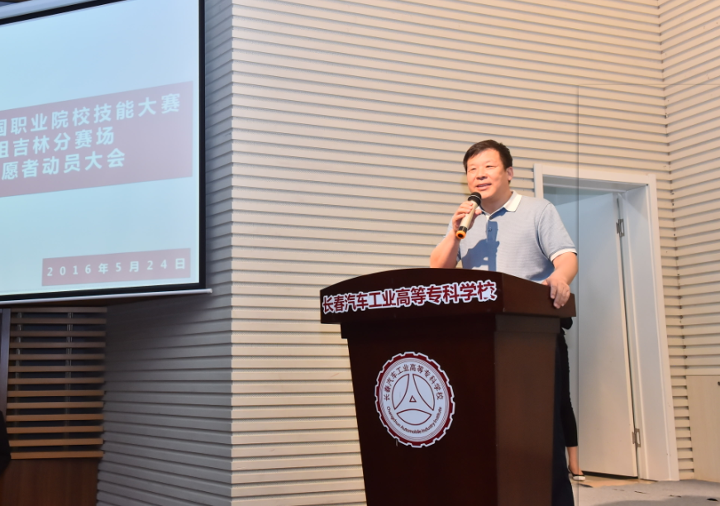 2016年5月24日,在我校图书馆报告厅举行2016年全国职业院校技能大赛志愿者动员大会。副校长明晓辉、汽车工程学院院长赵宇、汽车营销学院院长王泽生、党委宣传部部长蒋希娟、安全保卫部部长李宝洪、工程训练中心主任陆俊松、后勤管理科科长吴颖锋、新宇集团经理罗洪亮、校团委副书记赵良富及学生处、各学院的老师们和359名志愿者参加了动员大会,大会由校团委赵书一老师主持。