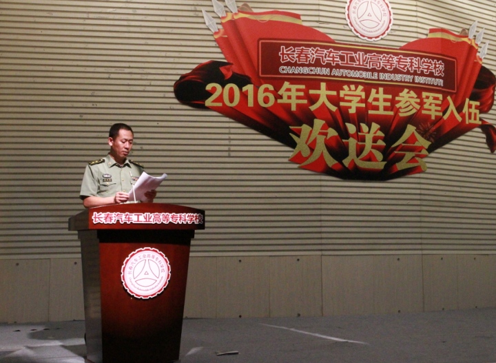 又是一年送兵时,簌簌热泪尽英豪。9月9日,学校在图书馆报告厅召开了2016年大学生参军入伍欢送会。学校副校长明晓辉、绿园区人民武装部领导及我校征兵工作领导小组成员、相关职能部处负责人、各学院学生工作负责人、退伍学生及新兵家长代表出席了大会。