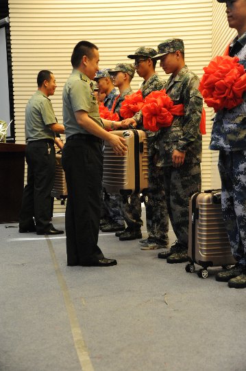 领导们都向即将启程的大学生新兵表示热烈祝贺,同时也寄语大学生新兵们早日完成由一名优秀大学生向合格的解放军战士转变,努力在部队建功立业。