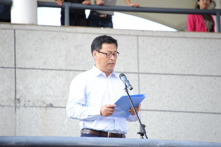 最后,李春明校长发表了热情洋溢的讲话。他首先对新同学的到来表示热烈欢迎!同时对军训工作中给予学校大力支持的65370部队指战员表示衷心的感谢!他说,同学们在经济下滑,全国高校就业压力很大的形势下,选择了长春汽车高专,这不仅是一份美好的缘分,更是一份沉甸甸的信任。接下来为了2016级的新生能够在学校度过一段充实而有意义的大学生涯,李校长也向新同学们提出了三点希望和要求:第一,希望同学们信心满满、扬帆启航。他鼓励同学们在能力比文凭更重要的今天,要相信自己,用自己的职业追求和能力证明自己的优秀;第二,希望同学们修身立德、志存高远,做一个知书达理、诚实守信、品德高尚、有理念、有抱负的人;第三,希望同学们勤学上进、追求卓越。在未来的学习中要有不怕累、肯吃苦、多动手、勤思考、精益求精、永不满足的工匠精神。