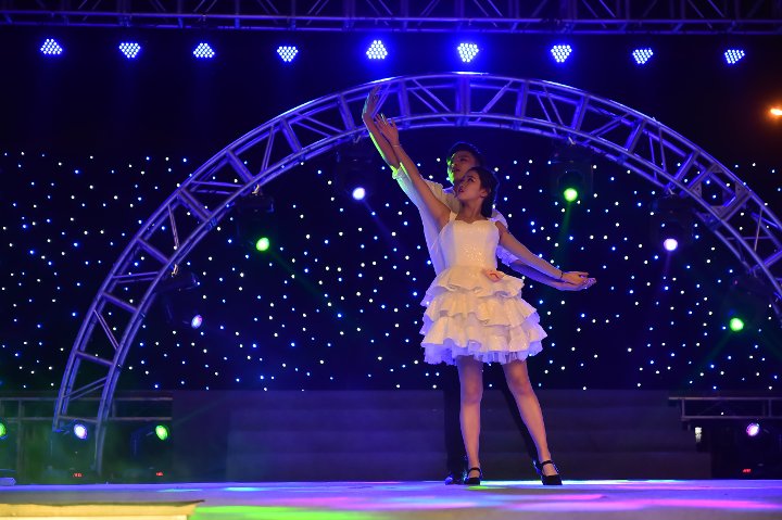 表彰大会之后,一场气势恢弘的师生共舞拉开了车模大赛的帷幕。大赛共有四个环节,分别是“锦瑟年华”运动装展示环节、“镜花水月”主题秀环节、“别有洞天”知识竞答、“激情盛宴”晚礼服展示。选手们身材高挑,服饰靓丽,身姿迷人,将活力、青春的时尚风采在T台上完美绽放。走秀期间穿插了精彩纷呈的文艺节目表演,玄妙的魔术表演、绚丽的灯光秀、流行乐队的歌曲串烧和粗犷而不失柔情的蒙古舞表演展现了现代大学生的精神风貌。
