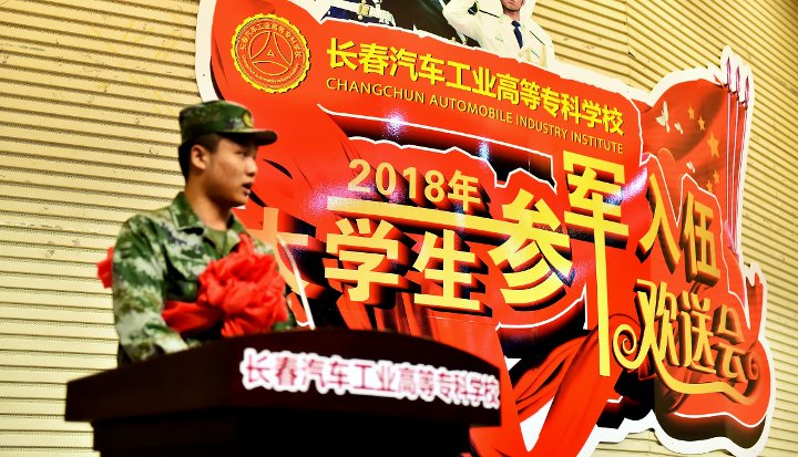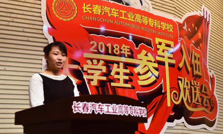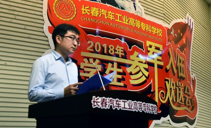 欢送会上,首先由学校征兵工作站徐志鹏老师宣读入伍命令。我校共有92名优秀学子参军入伍,电气工程学院苗壮同学代表全体入伍新兵表决心,要严格要求自己,在军营这个人生大熔炉中磨练自我,茁壮成长。新兵家长代表丛连芝在发言中希望孩子在部队能够锻炼自己、提高素质,为祖国的国防增强力量!随后,由长春汽车工业高等专科学校党委书记安军、副校长明晓辉为新兵代表颁发纪念品。