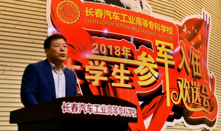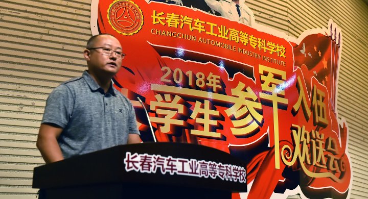 2018年9月12日下午,2018年大学生参军入伍欢送会在报告厅隆重举行。我校党委书记安军、副校长明晓辉、党委宣传部部长蒋希娟,各院部、职能部门领导及新兵家长参加欢送会,会议由学生处副处长程明主持。