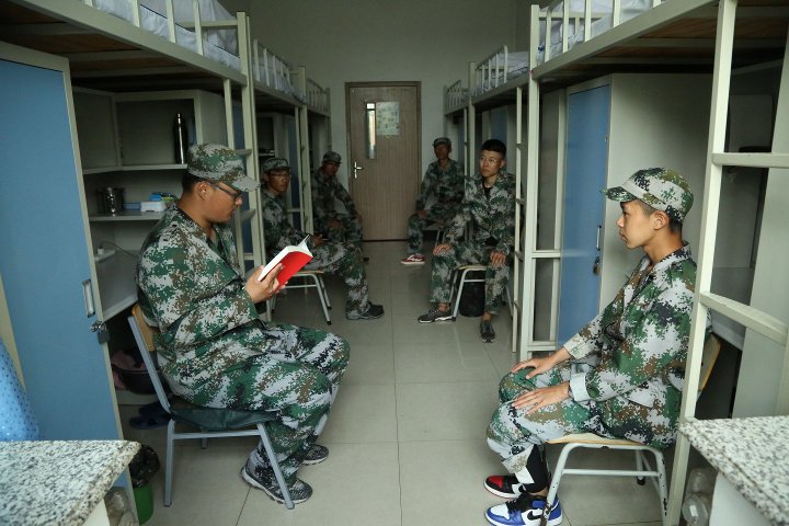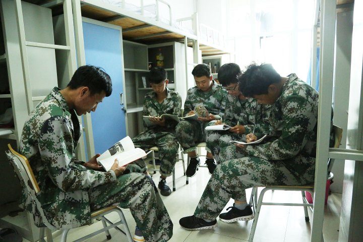 9月21号下午,我校全体2018级学生开展军训“十个一”之习言微语学习,学习习近平总书记系列讲话,全体学生以寝室为单位,在寝室长的领学下进行学习。