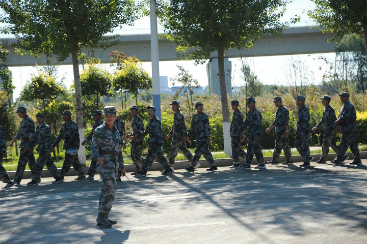 野外徒步行军拉练是军训的重要项目之一,既能磨练学生意志,又考验了学生耐力和体能。为了保证本次拉练活动安全顺利地进行,学校多部门联合并协调交管部门提前对拉练路线进行勘测,制定安全保障预案。充分考虑了学生的身心健康后,反复修改了路线和时长。沿途设立7个教官指引点,1个固定医疗点和1个医疗流动巡逻车,多台道路安全保障车,并在拉练途中各个路口设立安全员,以确保队伍安全通过。同时,保卫处出动数名警力和一辆警车作为协同,警车负责开道,引导学生拉练行走方向,在重要路口拦阻车辆,提醒学生快速安全通过,保证了拉练活动顺利完成。