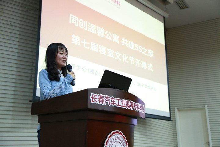10月25日下午14时40分,我校第七届寝室文化节开幕式在图书馆报告厅举行。本届寝室文化节以“同创温馨公寓 共建5s之家”为主题,旨在进一步加强公寓管理,传承公寓5S文化,提高自我管理、自我教育、自我服务、自我监督能力,丰富学生的课余文化生活,倡导健康向上的生活方式,增强团队合作和寝室成员之间的凝聚力,营造有特色的寝室文化氛围,创建文明校园,开幕式由学生处公寓管理中心冷月老师主持。
