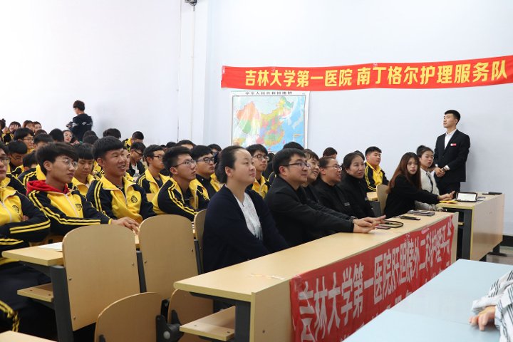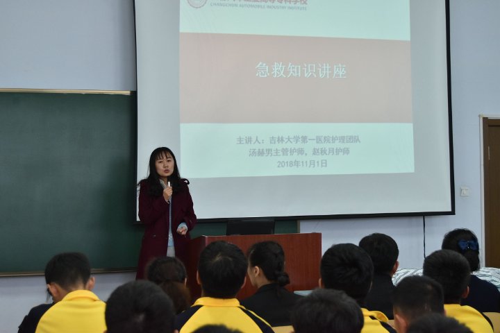 为增强我校学生的日常医疗急救意识,掌握基本急救操作技能,11月1日下午,我校学生处公寓管理中心邀请吉林大学第一医院肝胆胰外二科的医护人员,为师生举办了一场生动而有意义的急救知识讲座。吉林大学第一医院南丁格尔护理服务团队赵秋月护师,汤赫男主管护师参加了此次讲座。2018级的180名寝室长,学生处徐志鹏、冷月老师、新宇集团杨占英、公寓楼长前来会场听讲,学生处冷月老师主持此次讲座。