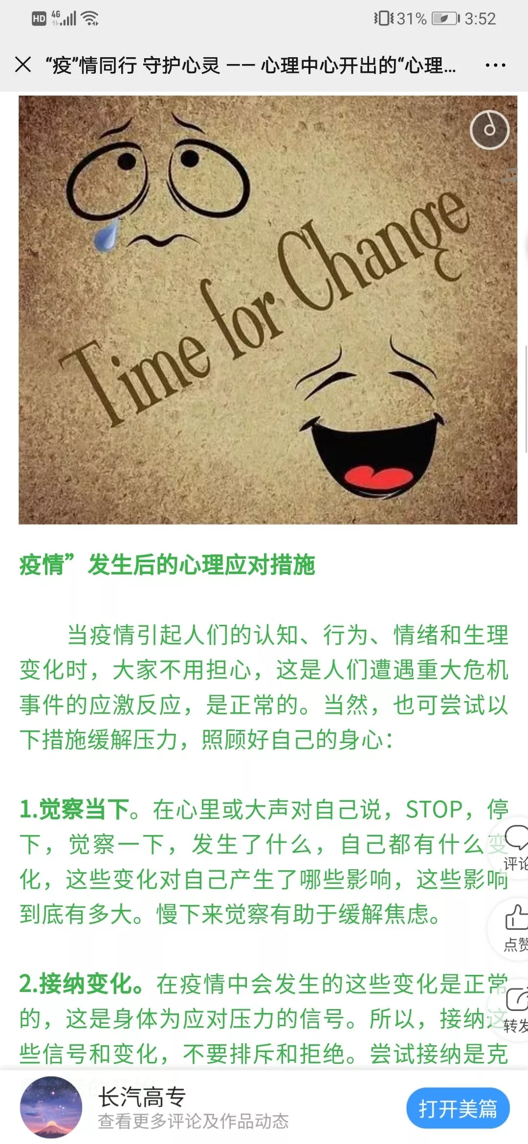 深入开展心理宣传引导,充分利用网络平台,宣传疫情防控有关知识,引导师生理性面对疫情。