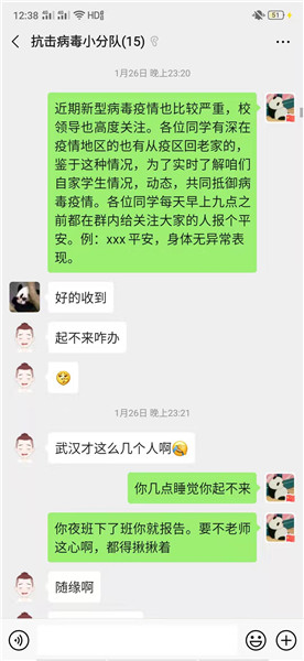 近期,新型冠状病毒感染肺炎疫情蔓延全国,形势严峻,我校教师牢记使命、奋勇当先,主动递交抗疫“请战书”,秉持着全心全意为学生服务的思想,利用宝贵的休息时间,为全校学生进行动态关注与日常帮助,战“疫”之路上,留下了他们最美的身影。