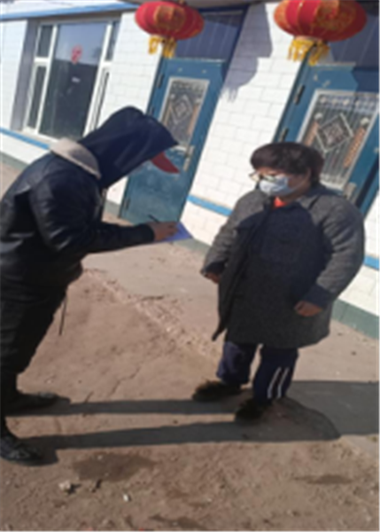 张莹每天按时到达工作岗位,挨家挨户走访,查询有无出省或外来人员,把疫情的严重性宣传到每一位村民,并且记录到册,天气虽冷,信念不泯,张莹用实际行动彰显了一名共青团员的担当与责任,诠释着共青团员的先进性和示范性。