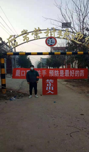 电气工程学院2018级学生段喜鹏,在吉林省延边州 村里,一直坚持做防疫志愿者,在村里设置的卡点处,为进出车辆及人员登记,并测量体温。