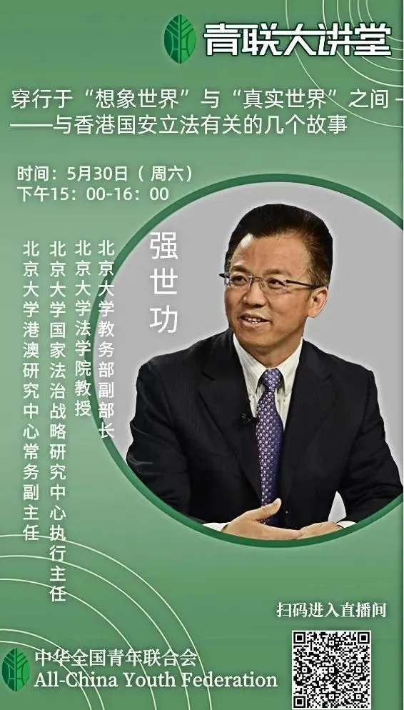 十三届全国人大三次会议通过了《全国人民代表大会关于建立健全香港特别行政区维护国家安全的法律制度和执行机制的决定》,据此青联大讲堂将于明天举办在线交流活动,与大家一起认识学习全国人大涉港决定,关注香港未来的发展之路。