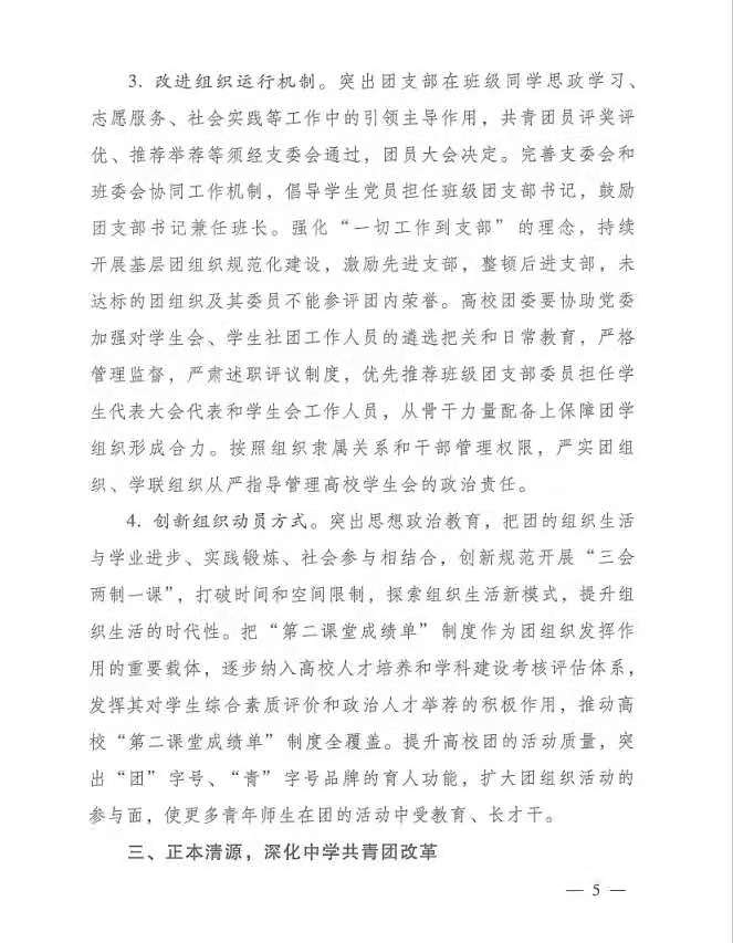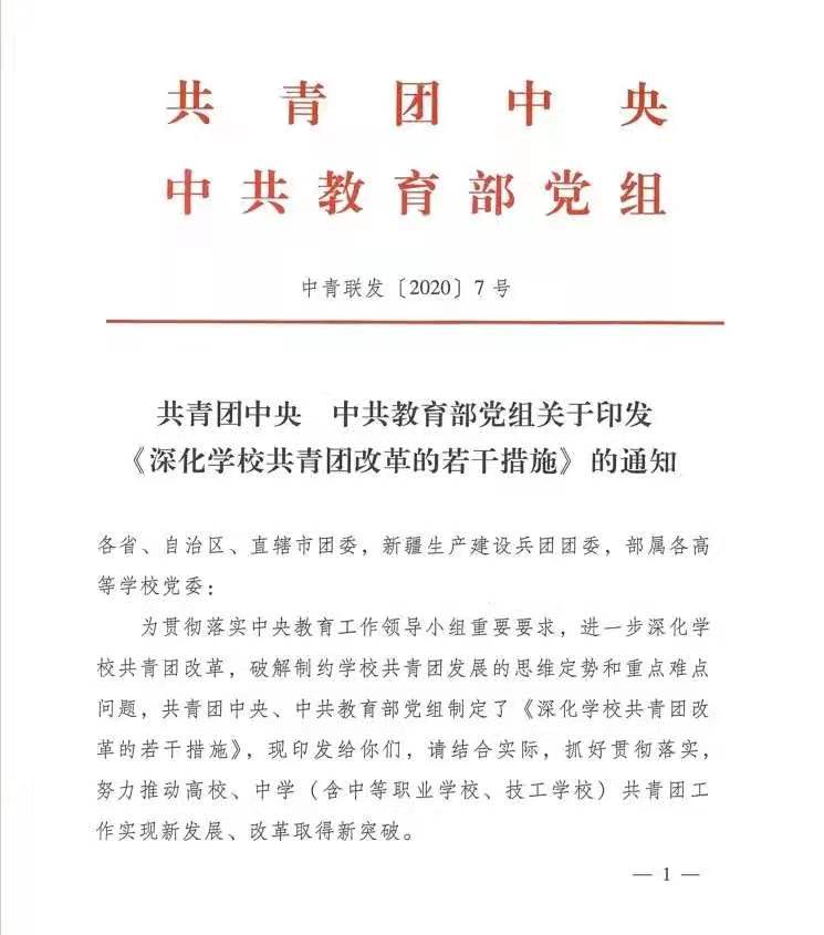 转载 | 共青团中央、中共教育部党组联合印发《深化学校共青团改革的若干措施》