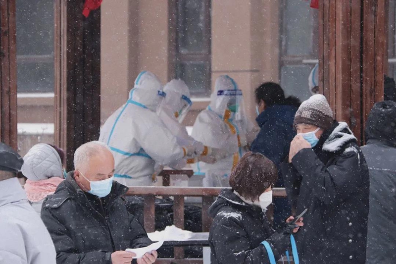 《伫立》 2021年1月20日拍摄于吉林市船营区核算检测现场。伫立冬雪寒风,身着白衣逆行,心似莲花绽放,不畏凛冽,他们是最美的逆行者,也是这个时代最可爱的人。张孝俊(汽车营销学院)