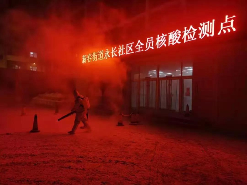 《战友》2021年1月19日拍摄于新春街道永长社区。冬雪的夜里,氛围红是我们的热情,全力全市全面消杀病毒,让生活早日回归平静。翟晋甲(汽车工程学院)