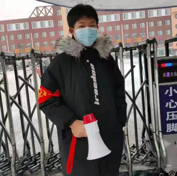 ——徐天鹏(吉林省松原市建业社区疫情防控志愿者,来自汽车运用学院)