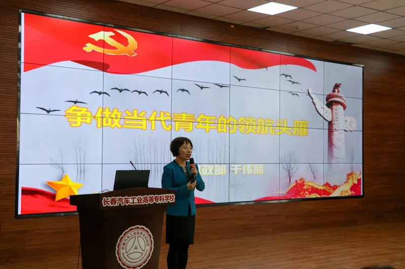 培训开班仪式结束后,思想政治理论教研部副主任于伟丽教授为全体学员上了培训班的第一堂课《争做当代青年的领航头雁》。